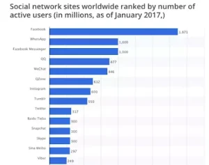 The 2017 report of the social media statistics (Smart Insight) claims that Facebook is dominating the social landscape. The percentage of people who have accessed this platform through the apps and stayed on it, being engaged in different activities, is highest for Facebook and a little less on Instagram, Twitter, Snapchat Chat, and others.